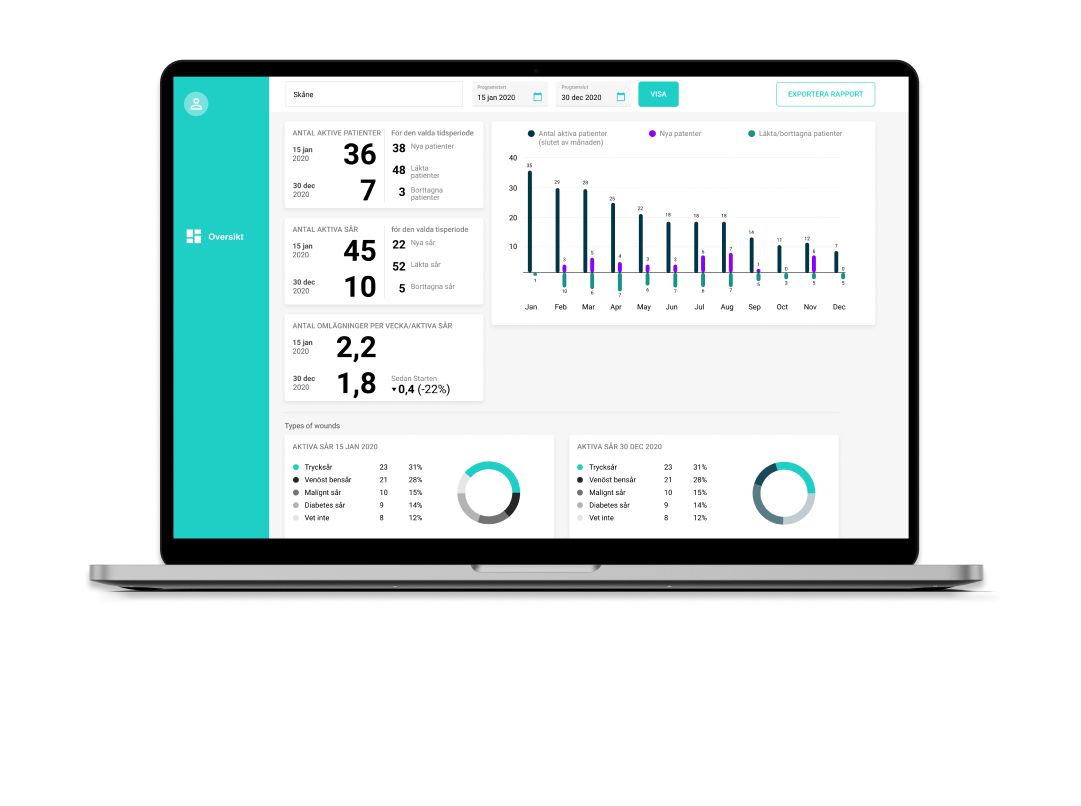 Se antall aktive pasienter med sår på Dashbord og følg utviklingen over tid.