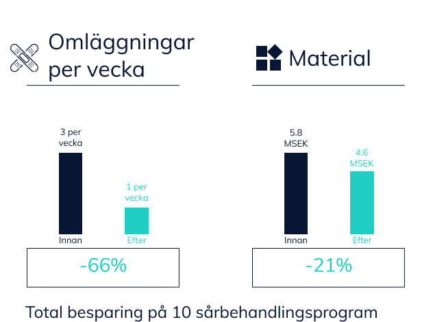 Ved å gi en individtilpasset behandling og redusere antall sårskift per uke, har løsningen vår vist seg å kutte de totale kostnader med over 50%.